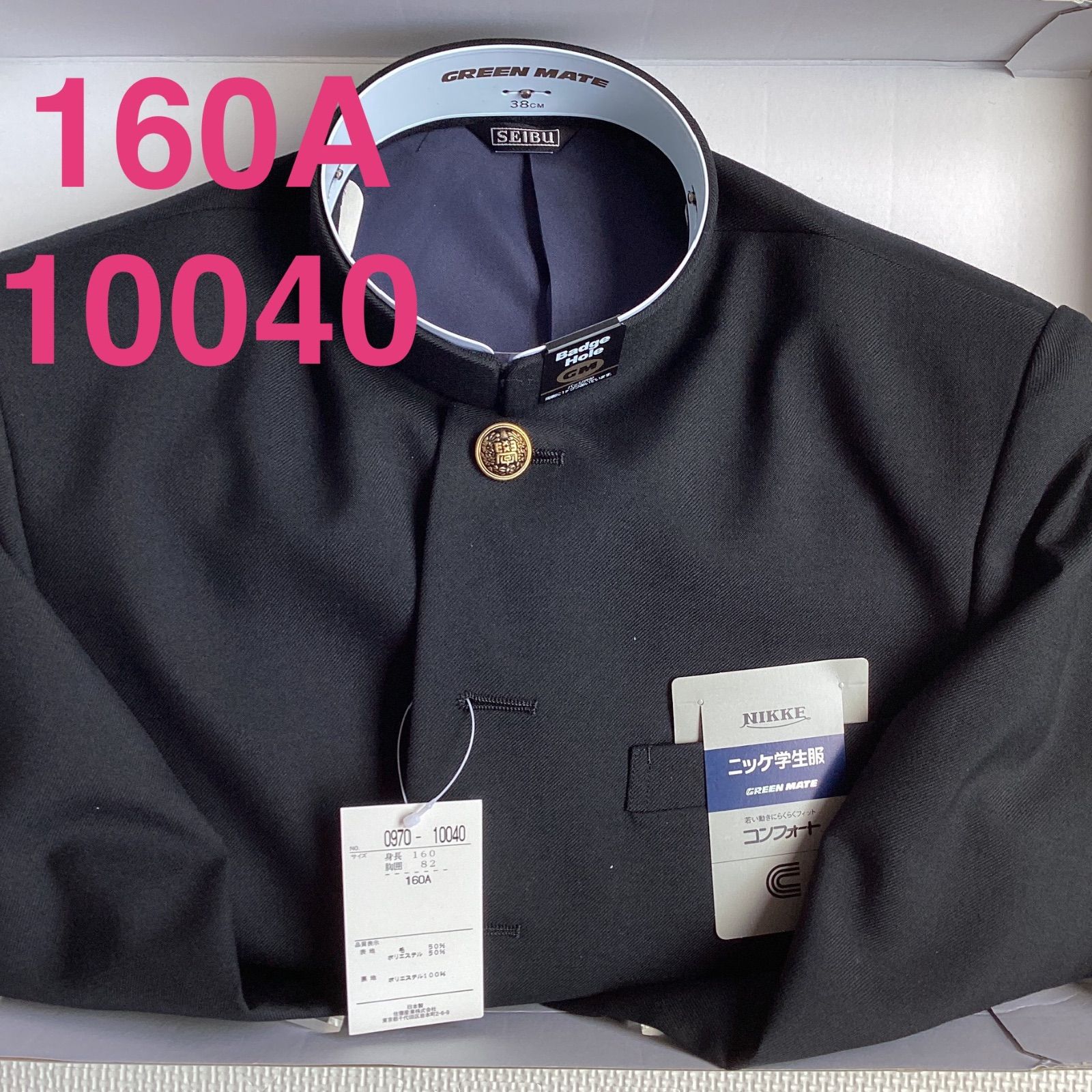 男子 学生服 160 A 襟 10040 学生 学ラン 詰襟 標準型 ポリエステル50% 毛50% ニッケ学生服 コンフォート Green Mate ウォッシャブル