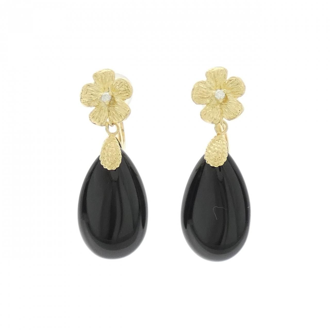 K 18 YG フラワー オニキス イヤリング