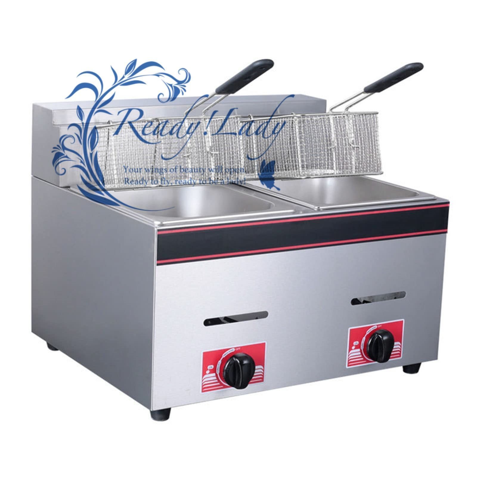 1. ダブルタンクガスフライヤー:当社のガスフライヤーには、6L + 6Lフライヤーと8L + 8Lフライヤーの異なる仕様があります。大容量のオイルタンクは一度に複数の材料を揚げることができ、ご家族やレストランでフライドポテトを提供するのに十分です。このフライヤーは強力で、ファーストフードレストラン、コーヒーショップ、スナックバー、パーティー、家族の集まりなど、商業用および家族での使用に最適です。