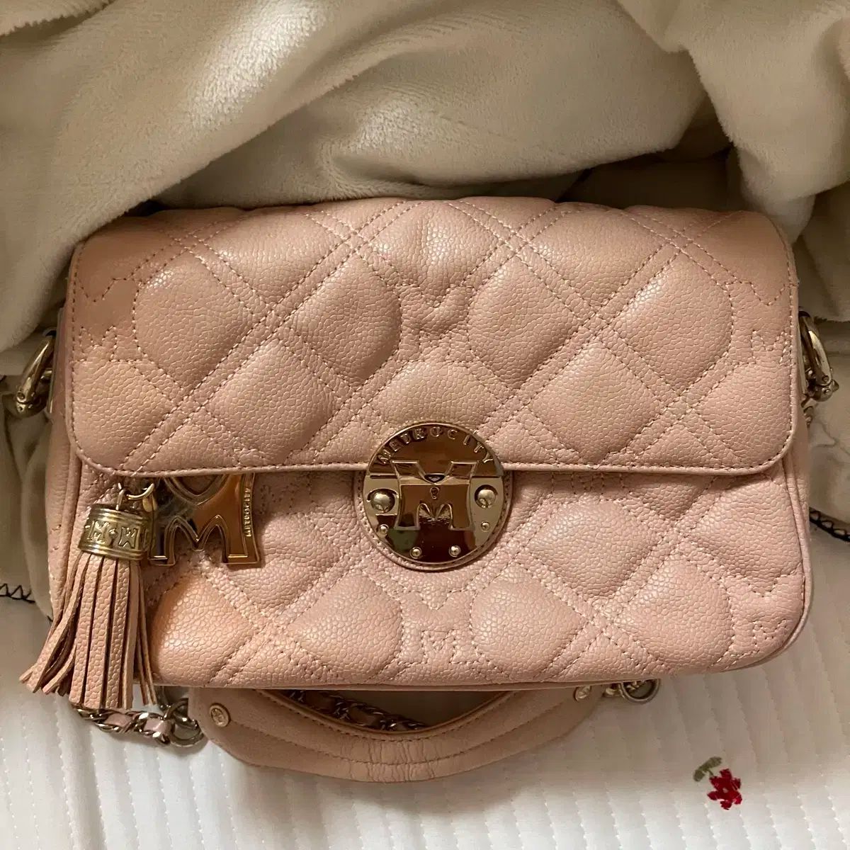 ?キーホルダーとバッグの留め具に写真のように若干の汚れがあります。それ以外は状態は本当に良いです。