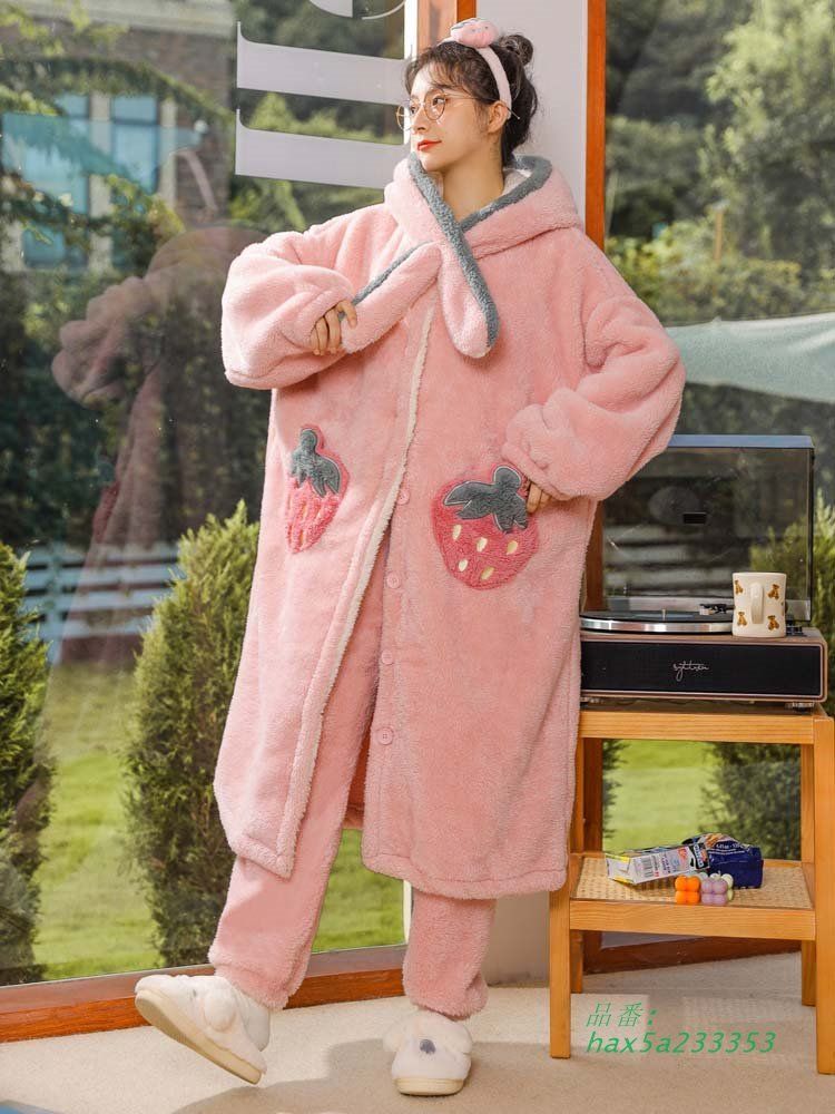 バスローブ パジャマ レディース 冬 ガウン ズボン大きいサイズ かわいい 長袖 ルームウェア 女子会 ナイトガウン 着る毛布 もこもこ 寝巻き 女性用 ふわふわ 前開き 裏起毛 可愛い 部屋着 プレゼント 暖かい ピンク M L XL 2XL