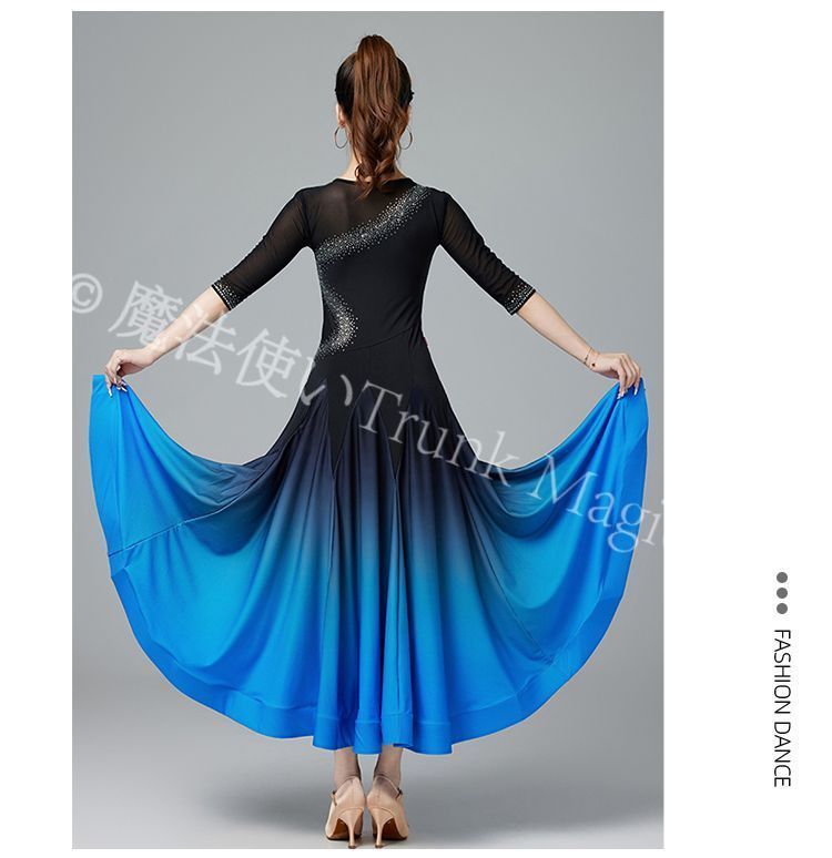 ♥ 摩登舞 ドレス モダンダンス ワルツ ラテン 交際舞 練習用 大きく広がるロングスカート 豪華舞踏会衣装 団体演出 コンペティション用 豪華セット