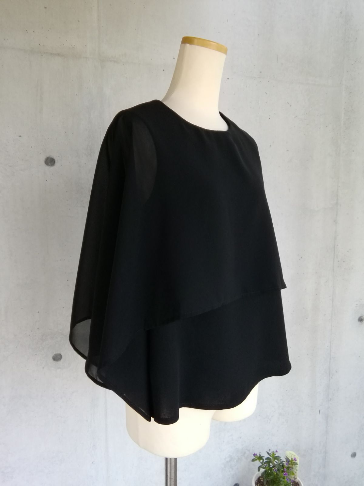 シフォンの上品な透け感が涼しげなケープブラウス。