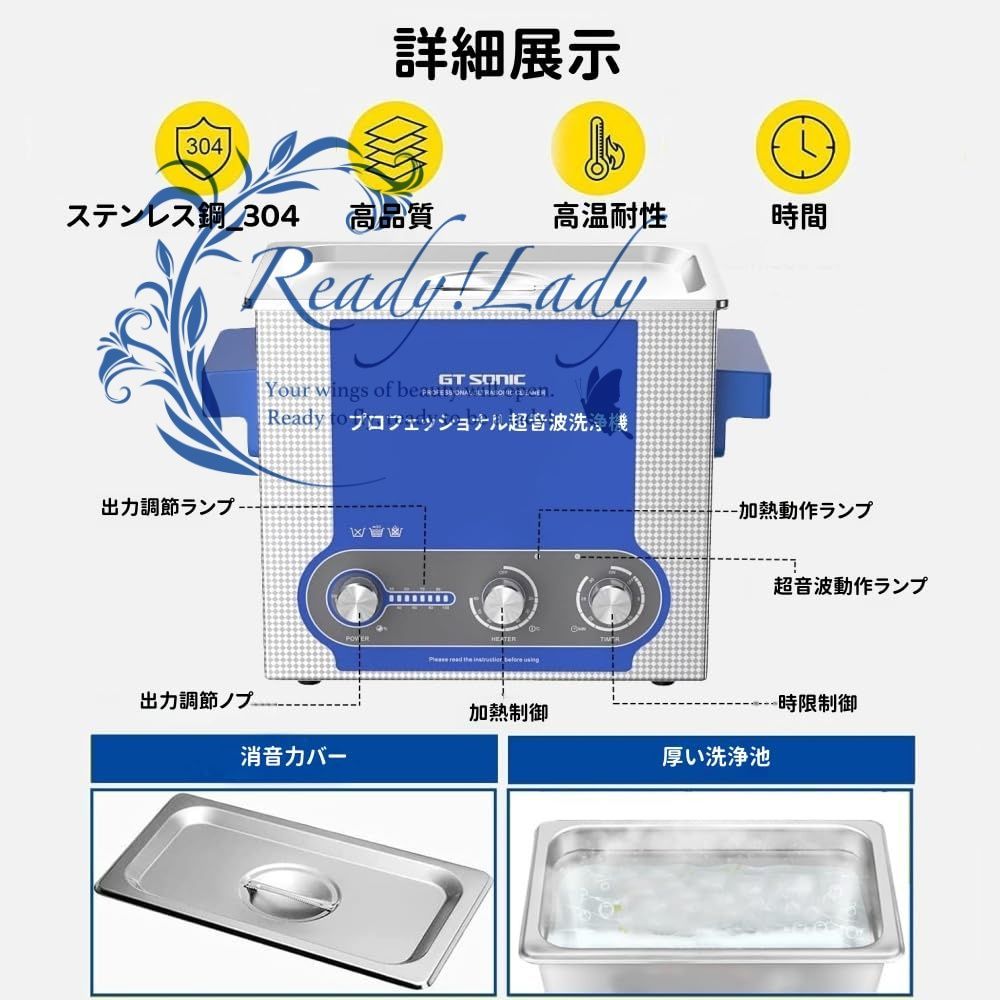 【多様な用途】洗浄槽液体容量は3リットルがあり、家庭、小型基盤、印鑑、スプーン、フォーク、タトゥー店、古物商、電気店、実験室、小中型業務などの使用をお勧めます。
