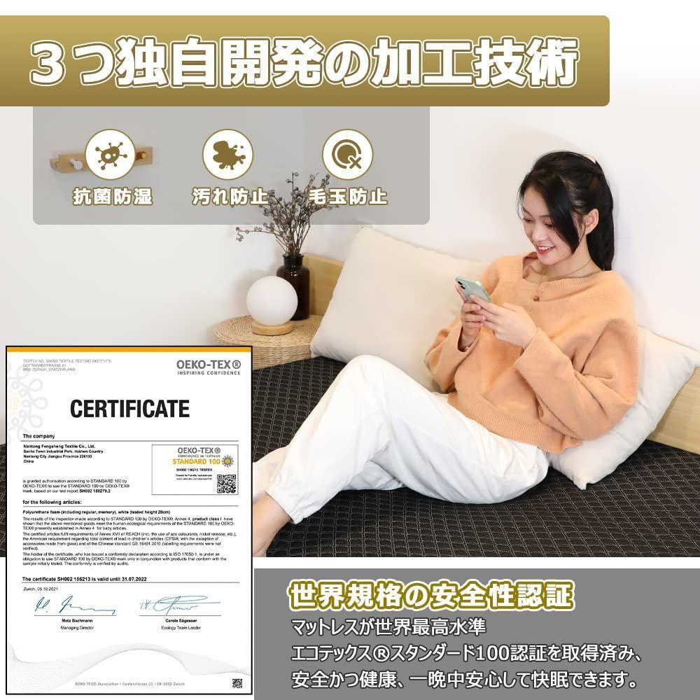 【安心・世界規格の安全性認証】マットレスが世界最高水準のエコテックススタンダード100認証を取得済み、安全かつ健康、一晩中安心して快眠できます。柔軟で肌触りの良い高級ニット生地の外カバーは防湿性もよく、乾きも早く抗菌性に優れています。