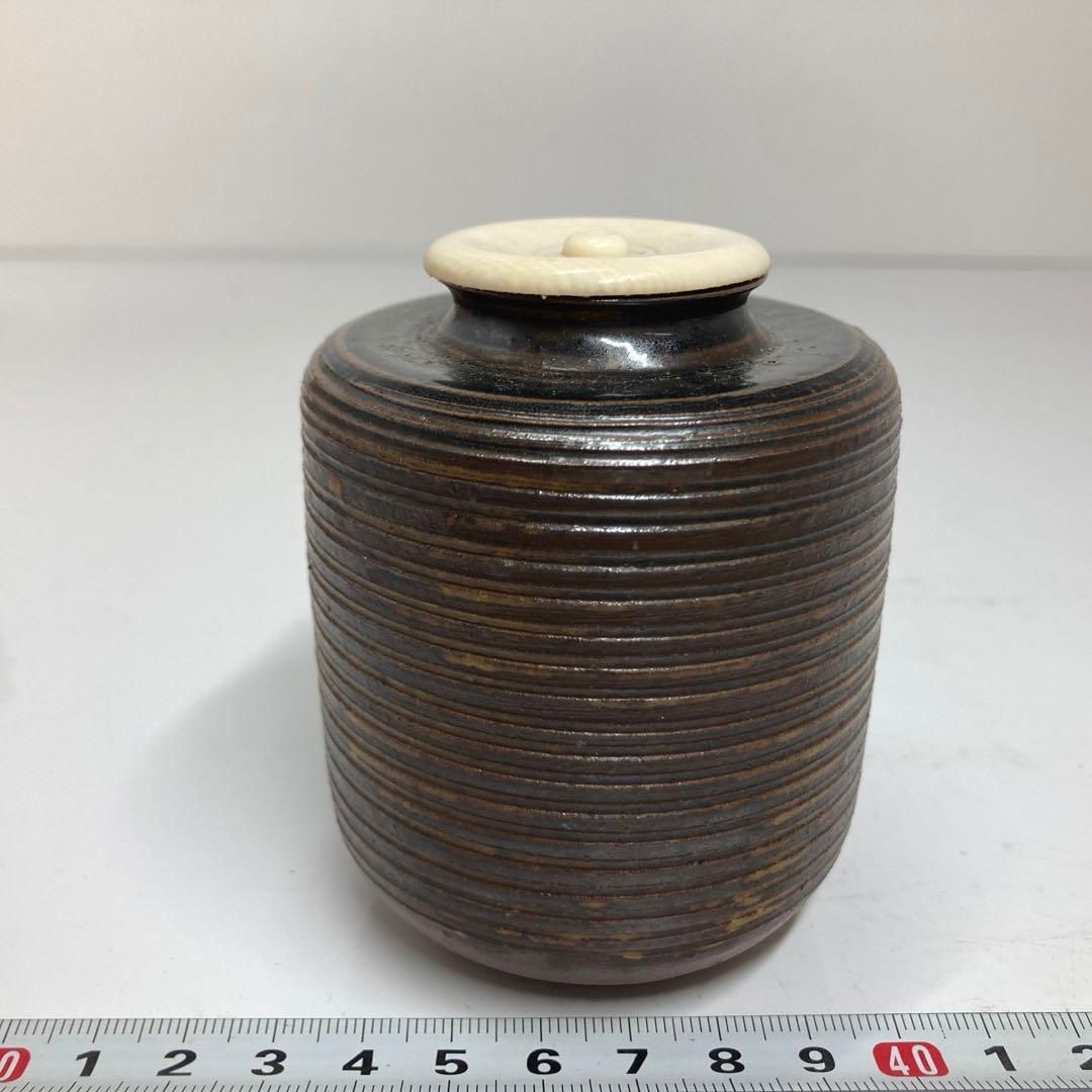 茶3 渡辺伸治造 名物 茶入 共箱 高さ8㎝ 東な6-0415