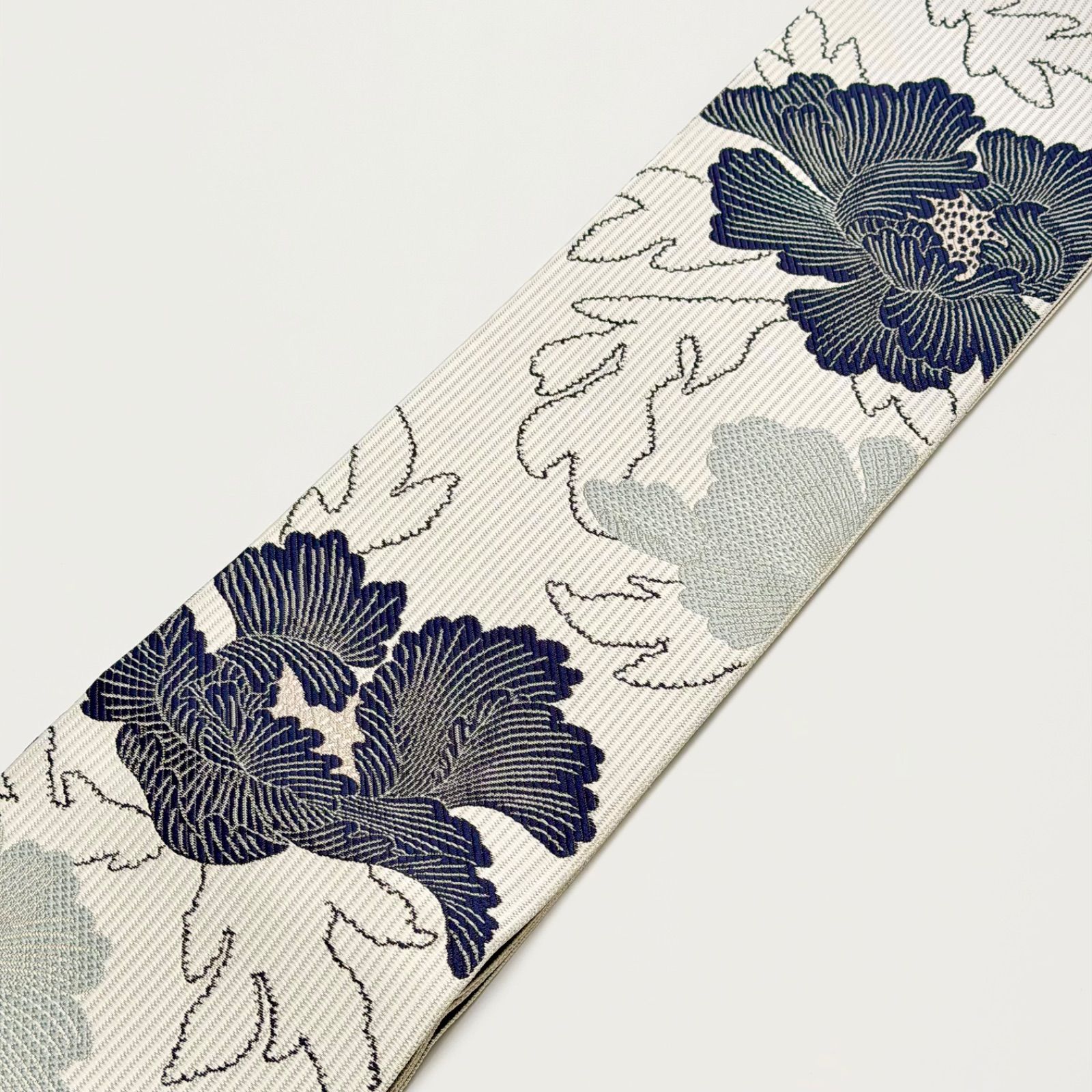 牡丹柄が大胆に織り上げられていてモダンな印象に仕上がっております。