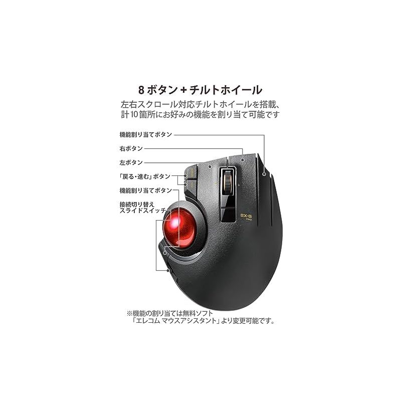 商品名:エレコム マウス 有線/ワイヤレス/Bluetooth トラックボール親指 8ボタン チルト機能 ブラック M-XPT1MRXBK