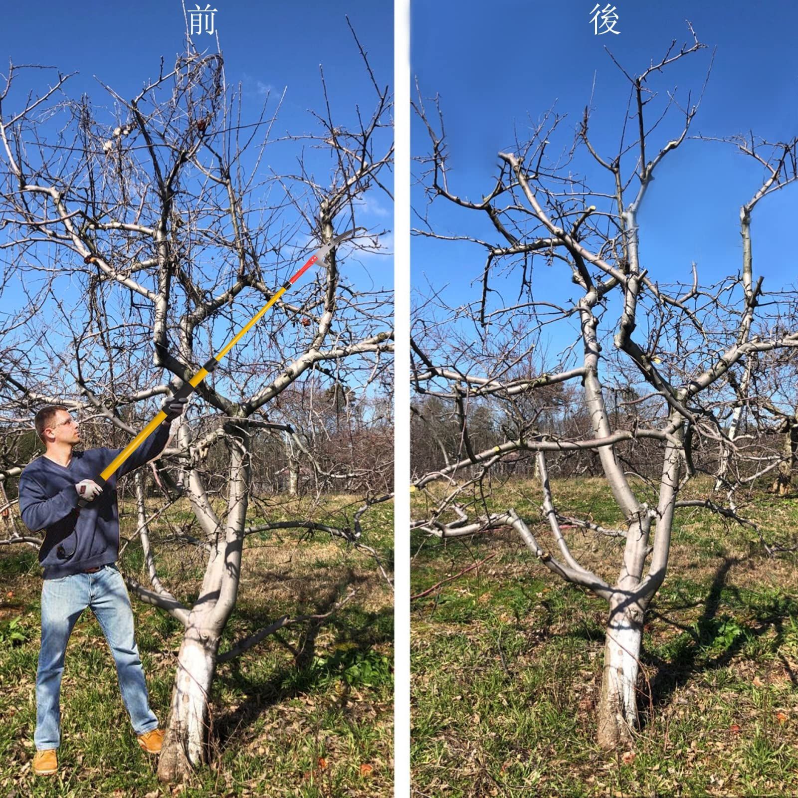 【幅広い用途】ツリートリマーは、ヤシの葉、松、モミ、オークなどの樹木の切断に使用でき、林業、芝生、庭園、パティオ、ヤード、および枝や葉をトリミングする必要があるその他の領域に最適です。伸縮ポール1本と鋸刃1本で、いつでもどこでも剪定作業を始められます。