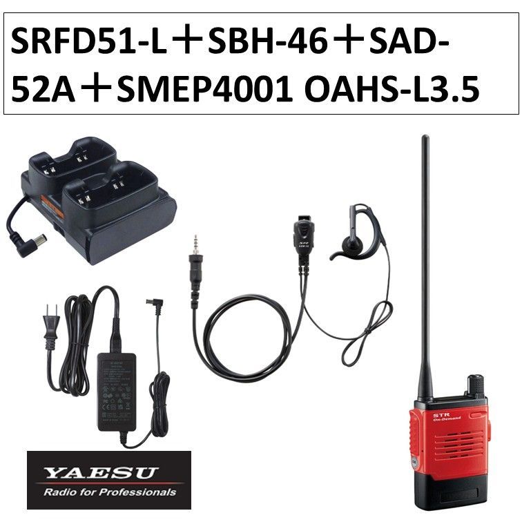 SRFD 51-L SBH-46 SAD-52 A OAHS-L 3.5 特定小電力トランシーバー ロングアンテナ 赤 レッド 八重洲無線 無線機 2ポケット充電器 型充電器用ACアダプタ タイピンマイク 耳かけ付きオープンエアー型 S