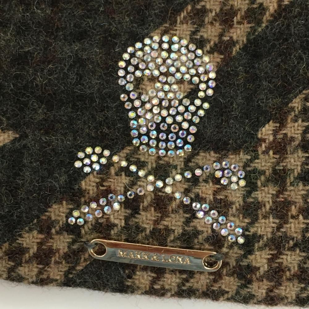 マークアンドロナ ニットスカートベージュ×ブラウン 前面千鳥格子 ウール混 レディース M ゴルフウェア MARK&LONA