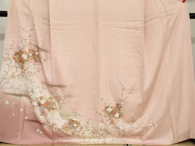 平和屋着物 訪問着 流水扇面草花文 暈し染め 金彩 正絹 ud